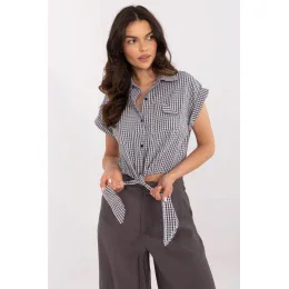 Dámská košile v karu Casual je stylovým a pohodlným návrhem pro každodenní outfit. Vyrobená z kombinace bavlny a polyuretanu spojuje přirozenou prodyšnost s jemnou pružností, co zaručuje pohodlí při nošení. Krátká délka, krátký rukáv a ozdobné šněrování na spodku jí dodávají lehkost a mladistvý charakter. Klasický límeček, zapínání na knoflíky a kapsa na hrudi zdůrazňují její praktický, a zároveň módní styl. Karo vzor dělá z košile skvělý doplněk jak k džínům, tak k šortkám.