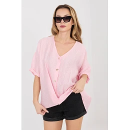 Dámská košile s lehkým a pohodlným střihem, ideální pro každodenní stylizace. Vyrobená z příjemné látky dotýkající se spojením viskózy a nylonu, díky čemuž je materiál prodyšný, lehký a dobře padne na postavě. Model se vyznačuje různorodou fakturou materiálu, která košili dodává zajímavý a stylový charakter. Košile nemá límeček, a štěrbinový výstřih jemně zdůrazňuje linii krku a dodává celku ženskou lehkost. Krátký rukáv zase způsobí, že se model skvěle hodí na teplejší dny. Standardní délka umožňuje nosit košili jak zasunutou do kalhot nebo sukně, tak volně. Zapínání na knoflíky je praktické a usnadňuje oblékání, zároveň je klasickým prvkem dokončení.