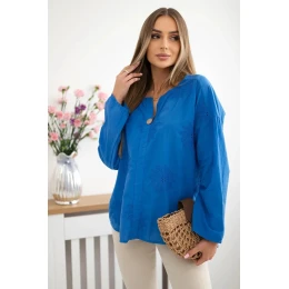 Košilová halenka IT-67 s vyšívaným vzorem - chrpově modrá