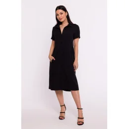 100% polyester PODROBNOSTI O PRODUKTU: tkaná látka košilové šaty šaty zapínání vpředu na knoflíky a límeček krátký rukáv přední kapsy ve švu bez podšívky délka pod kolena naše modelka je 164 cm vysoká a nosí velikost S navrženo a vyrobeno v Polsku