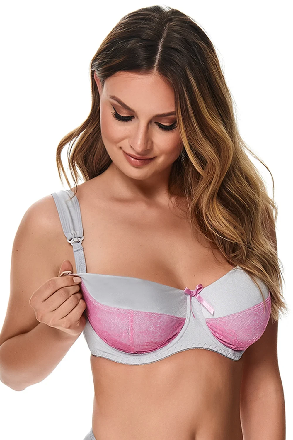 Podprsenka značky Kostar, model MM61 Allie, má drátky pro podporu a tvarování prsou, svislé kostice na bocích, nastavitelná ramínka s plastovými háčky, zapínání na háčky, zadní díl a je vyrobena ze 60 % bavlny, 30 % polyamidu a 10 % elastanu. Těhotenské oblečení, dámské oblečení, odnímatelné košíčky.