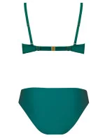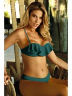 Dvojdílné plavky. Vyztužená podprsenka zdobená volánkem na zádech, s nastavitelnými odnímatelnými ramínky. S hladkými vykrojenými kalhotkami.