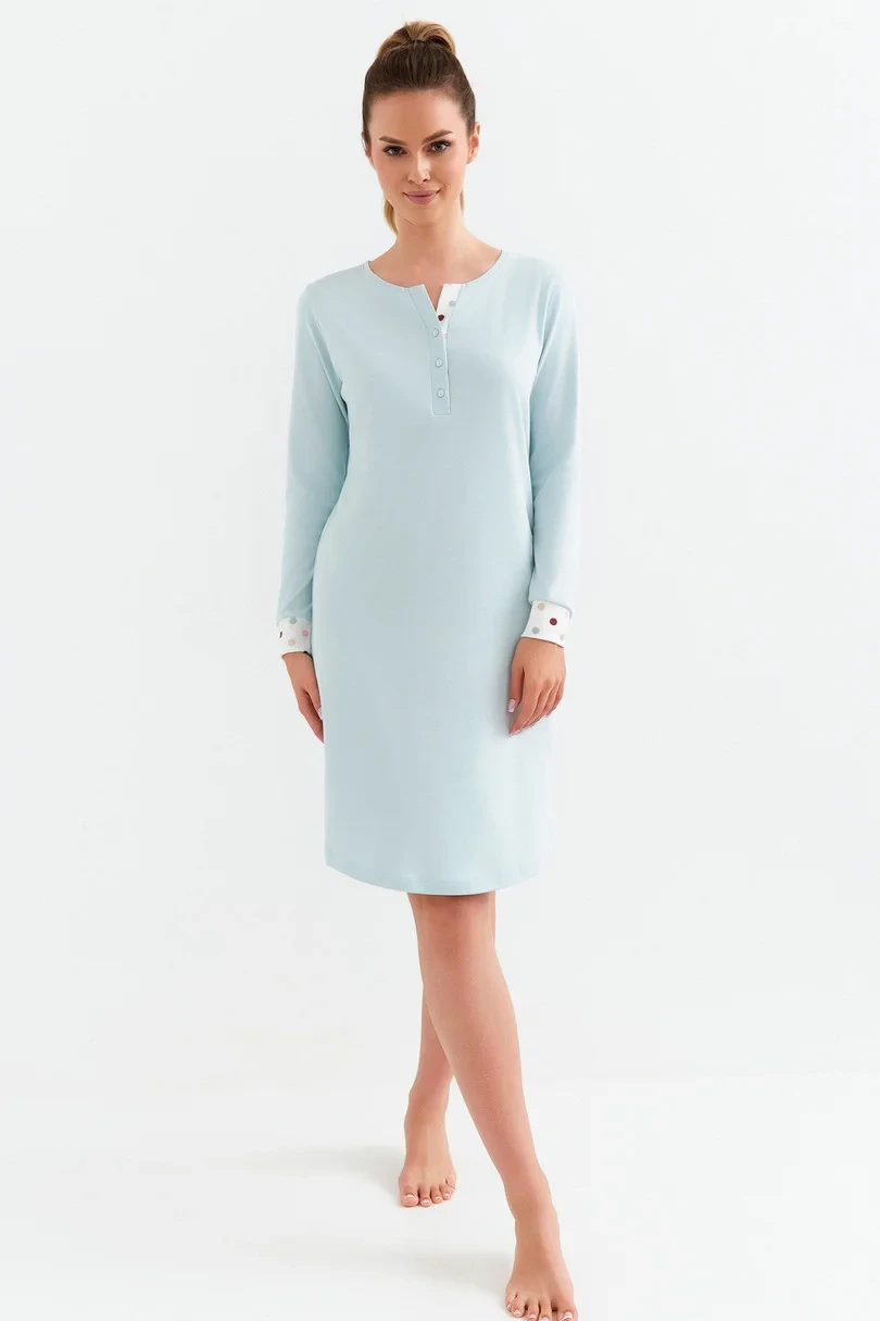 kulatý výstřih s rozšířeným polo výstřihem se 3 mátovými perleťovými knoflíky