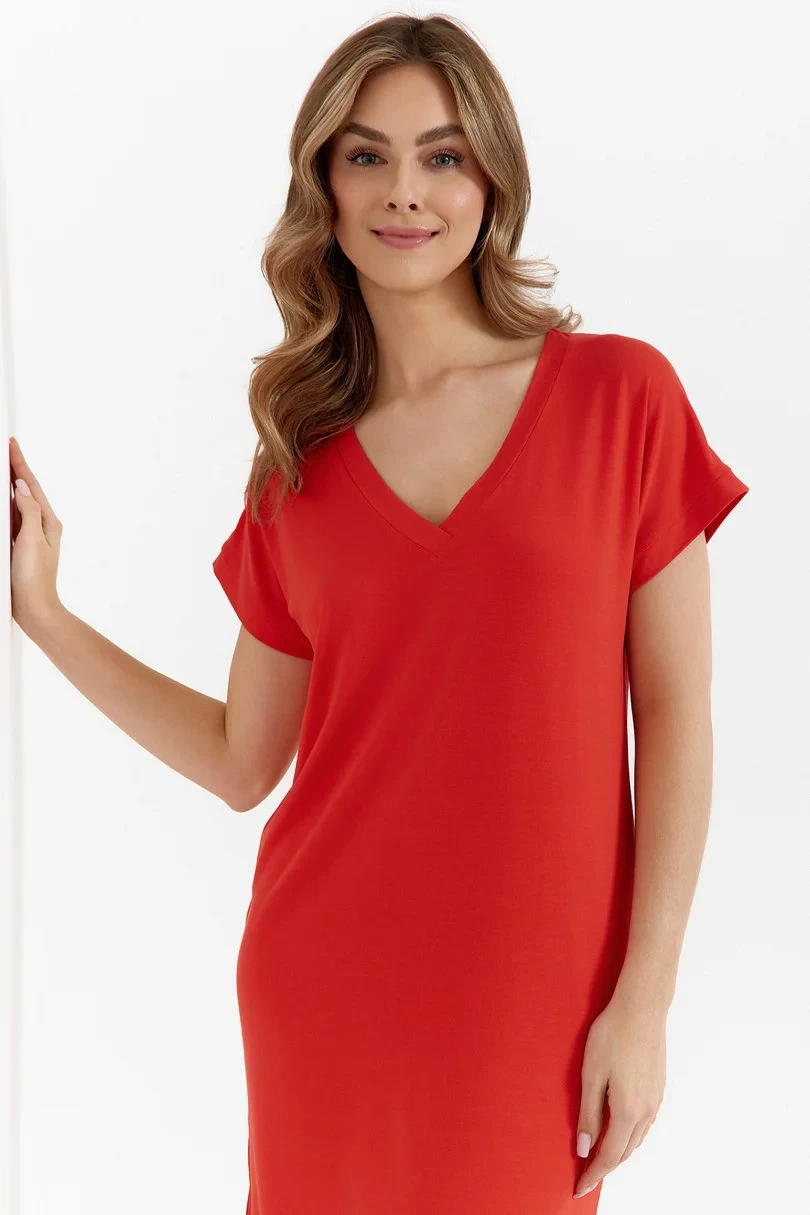 CANA 455 to elegancka i wygodna koszula nocna dla kobiet ceniących komfort. Wykonana z delikatnej mieszanki modalu i bambusa, zapewnia miękkość oraz przewiewność. Krój z krótkim rękawem, dekoltem w szpic i subtelnym rozporkiem na boku podkreśla kobiecość, a jednocześnie gwarantuje swobodę ruchów. To idealny wybór na każdą noc – lekka, stylowa i przyjemna w dotyku.