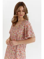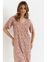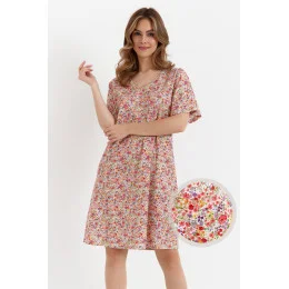 Lehká a pohodlná dámská noční košile z vysoce kvalitního bavlněného singles jersey. Jemný, barevný vzor drobných květin vytištěný digitálně jí dodává jemný, ženský nádech. Košile má pohodlný, rozšířený střih, který poskytuje volnost pohybu, zatímco prodloužené rukávy a kulatý výstřih jí dodávají klasickou eleganci. Sahá až ke kolenům, což zaručuje pohodlný spánek a plný komfort po celou noc.