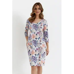 Rękaw 3/4 ozdobiony miękką, liliową koronką dodaje subtelności i lekkości całej stylizacji. Trójkątny, odszywany dekolt delikatnie eksponuje szyję, a długość do kolan sprawia, że koszula jest idealna zarówno na co dzień, jak i na wyjątkowe okazje. Poczuj się stylowo i wygodnie w każdej sytuacji!
