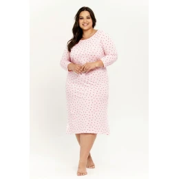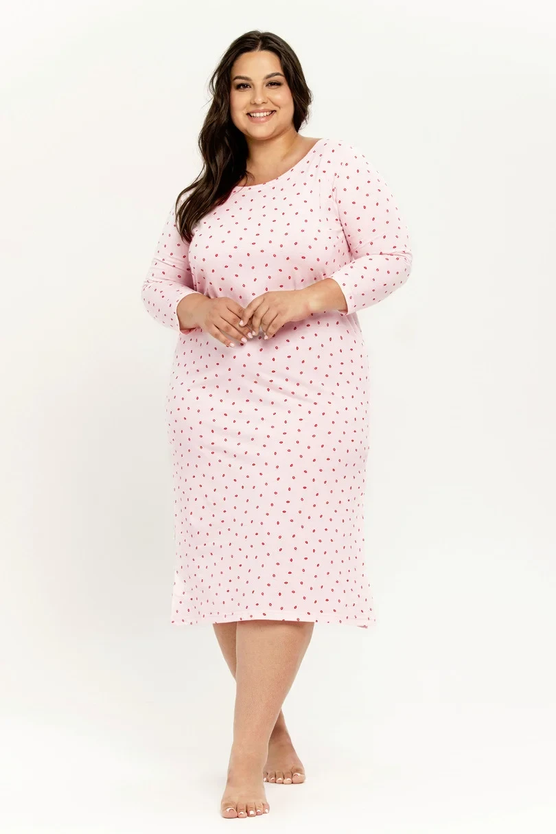Dámská košile se 7/8 dlouhými rukávy, ušitá ze vzorované bavlny, s lodičkovým výstřihem. Délka ke kolenům.