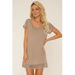 Noční šaty s krátkými rukávy a srdíčkovým výstřihem, rukávy a spodní část šatů zakončené tylem.