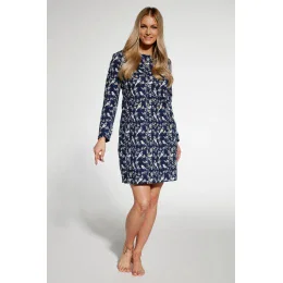 Dámské tričko s dlouhými rukávy z výjimečně měkké vzorované bavlny. Kulatý výstřih. Košile s délkou ke kolenům.