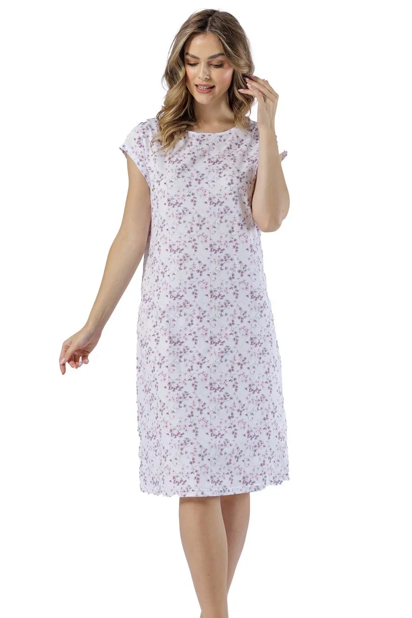 Dámské tričko s krátkým rukávem, ušité z měkké bavlny, kulatý výstřih, délka ke kolenům.