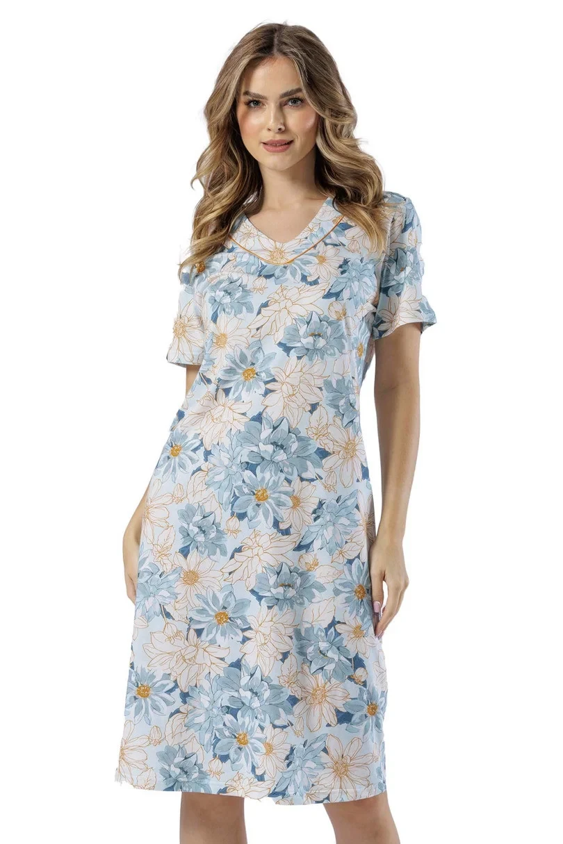 Dámské tričko s krátkým rukávem. Výstřih do V. Délka ke kolenům.