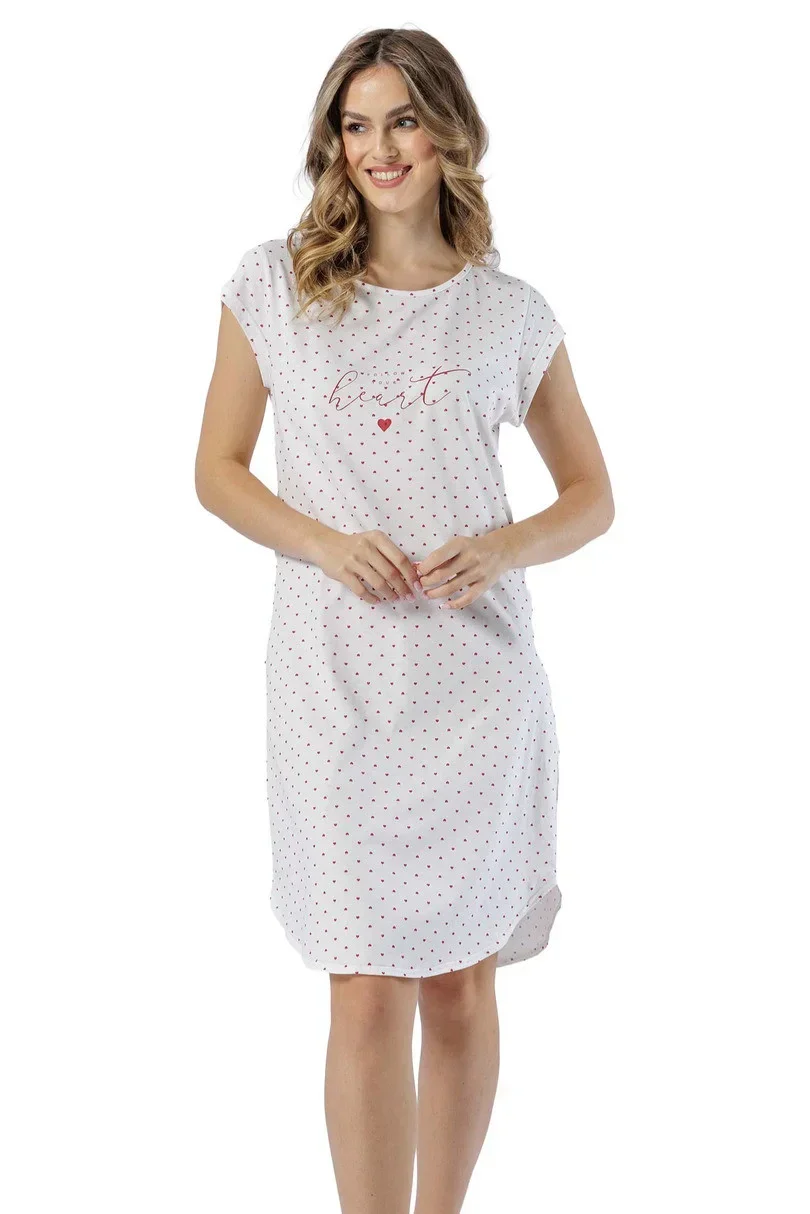 Dámské tričko s krátkým rukávem z jemné bavlny se vzorem ve tvaru srdce, jemným potiskem na hrudi a mírně zaobleným spodním lemem.