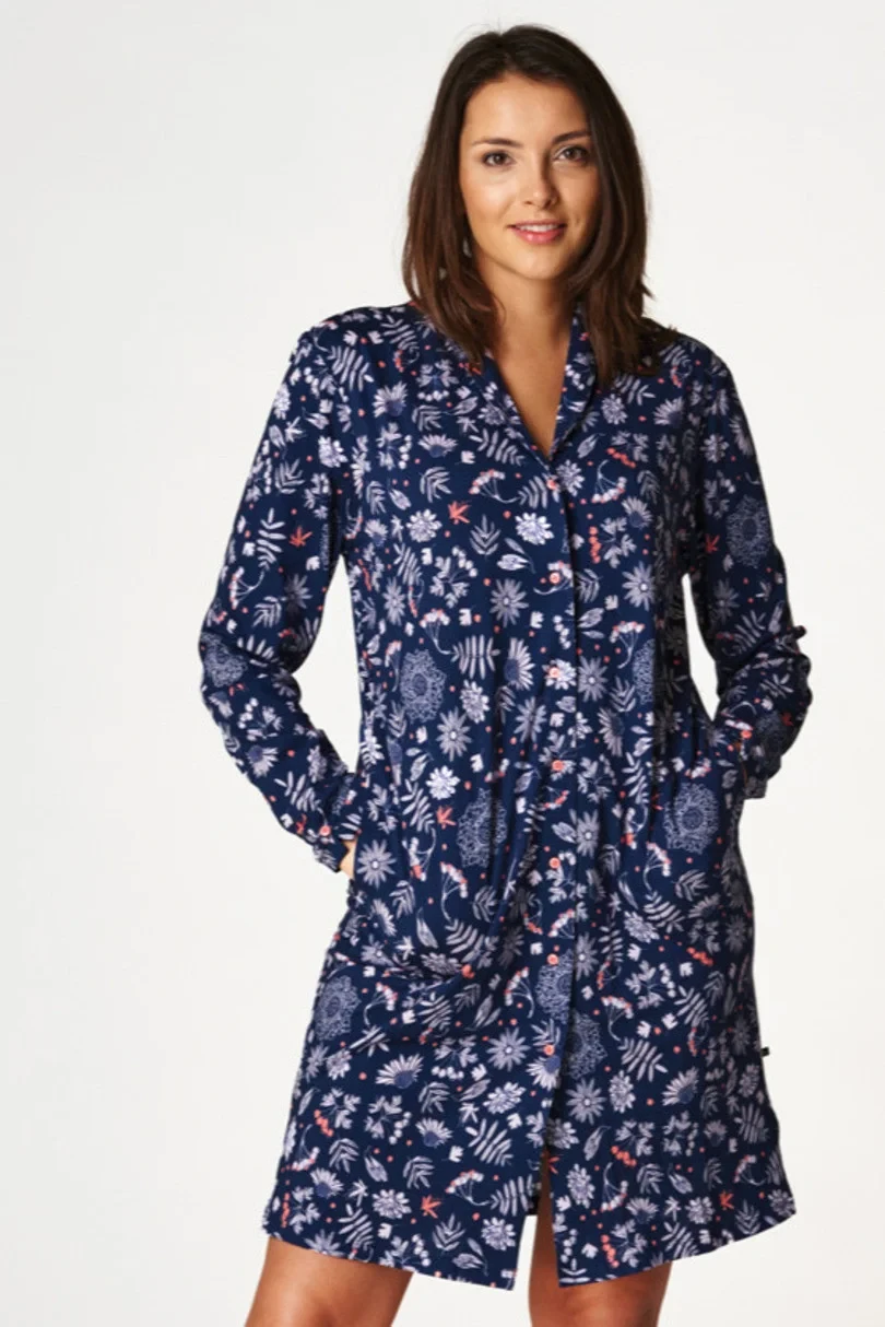 Rozepínací dámská bavlněná noční košile s kapsami.