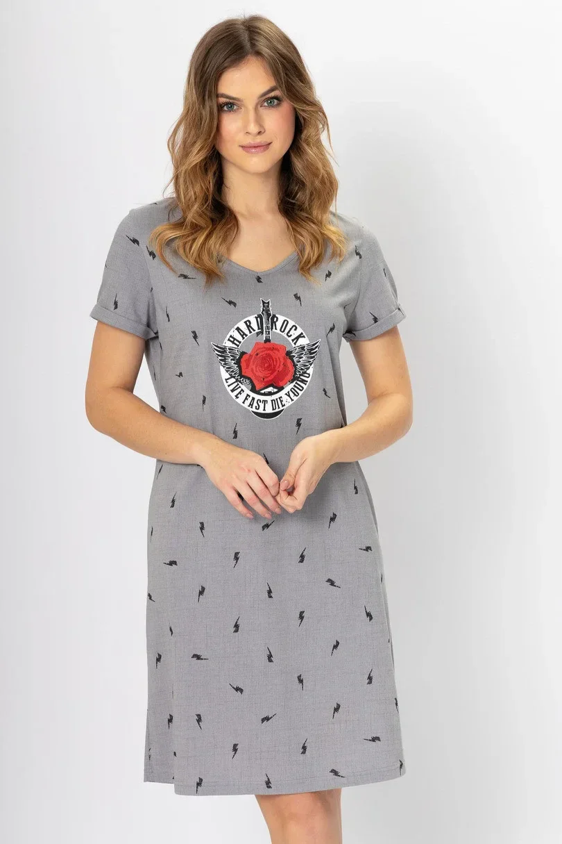 Dámské tričko s krátkým rukávem, mladistvým potiskem na hrudi a výstřihem do V.