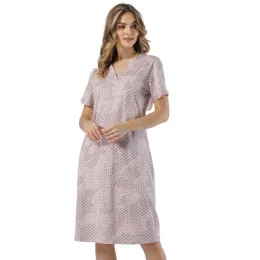 Dámské tričko s krátkým rukávem ze vzorované bavlny, s výstřihem a délkou ke kolenům.