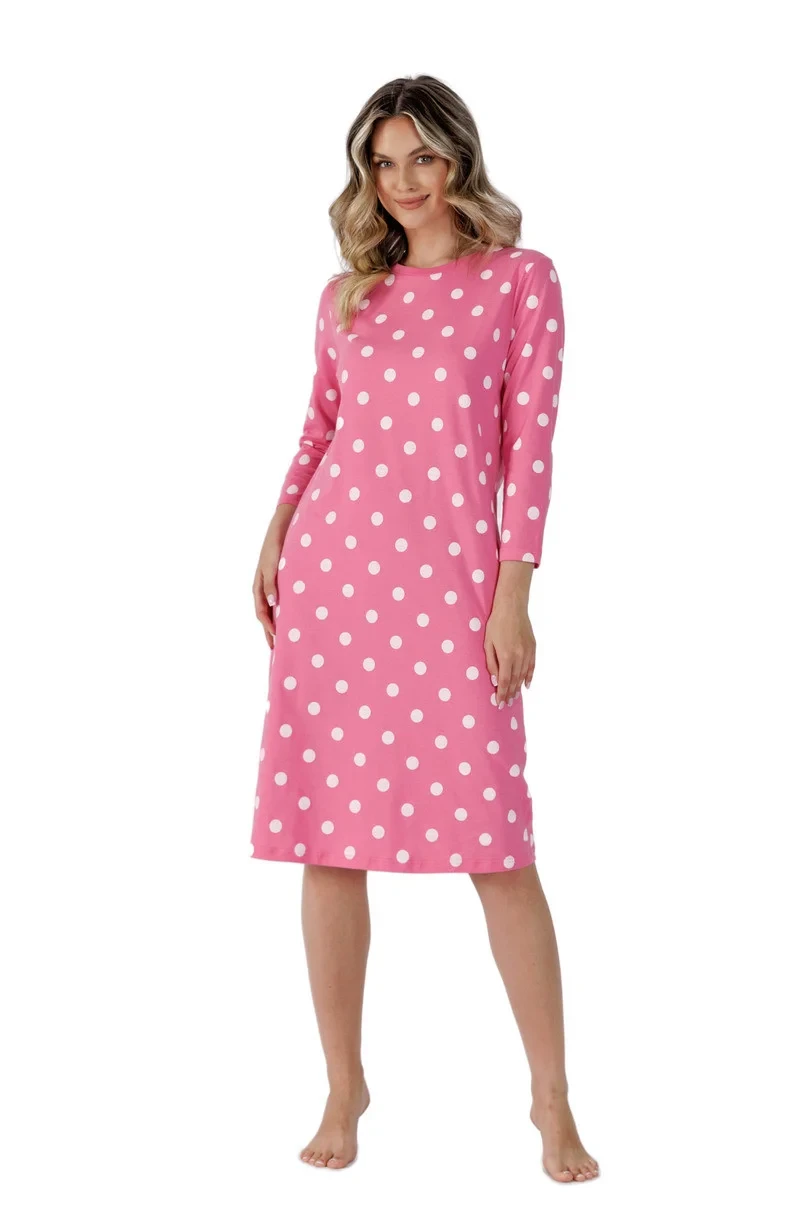 Dámské vzorované tričko z jemné bavlny, 7/8 dlouhý rukáv, kulatý výstřih, délka ke kolenům.