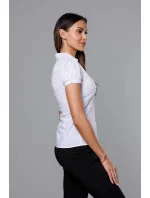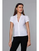 Halenka má jednoduchý střih v délce k bokům. Model má kulatý límeček a zapíná se knoflíčky.