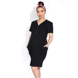 Kvalitní bavlněná noční košile s krátkými rukávy a praktickými kapsami. Výstřih ve tvaru V, zapínání na patentky. Košilka ideální pro těhotné i kojící ženy.