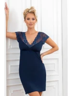 Dámská košile s krátkými rukávy z jemné viskózy s elastanem, s výstřihem s květinovým krajkovým lemem, řasením na prsou a krátkou délkou před kolena.
