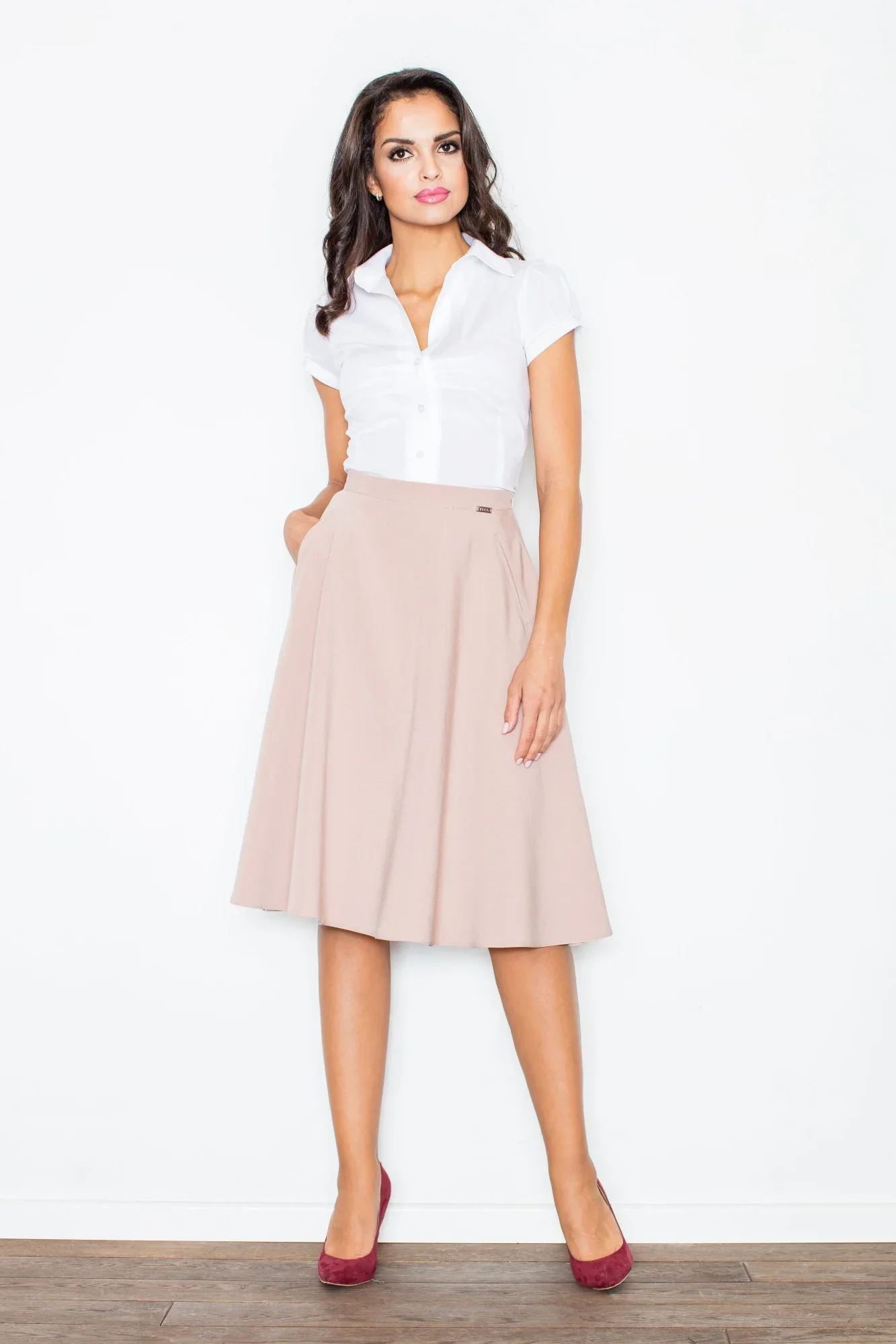 Rafaela czyli koszula, w której po prostu wygląda się rewelacyjnie. Skrojona tak aby eksponować to co mamy najlepsze zachowując doskonałe proporcje dla sylwetki. Subtelny dekolt zwieńczono rozłożystym kołnierzem przywodzącym na myśl włoskie krawiectwo. Koszula delikatnie dopasowuje się do ciała. Zaszewki pozwalają wyeksponować piersi. Małe, modne bufki to kolejna pokusa, której ciężko jest się tu oprzeć. Do wyboru wiele, atrakcyjnych kolorów.