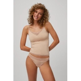 Koszulka damska Ysabel Mora 19048 to elegancki i wygodny element garderoby. Wykonana z wysokiej jakości poliamidu (90%) z dodatkiem elastanu (10%), zapewnia doskonałe dopasowanie do sylwetki i komfort noszenia. Model z wąskimi ramiączkami oraz subtelną koronką dodaje kobiecego uroku i lekkości. Gładki, elastyczny materiał sprawia, że koszulka świetnie sprawdzi się zarówno jako bielizna, jak i baza pod lekkie swetry czy marynarki. Idealna dla kobiet ceniących połączenie stylu i wygody.