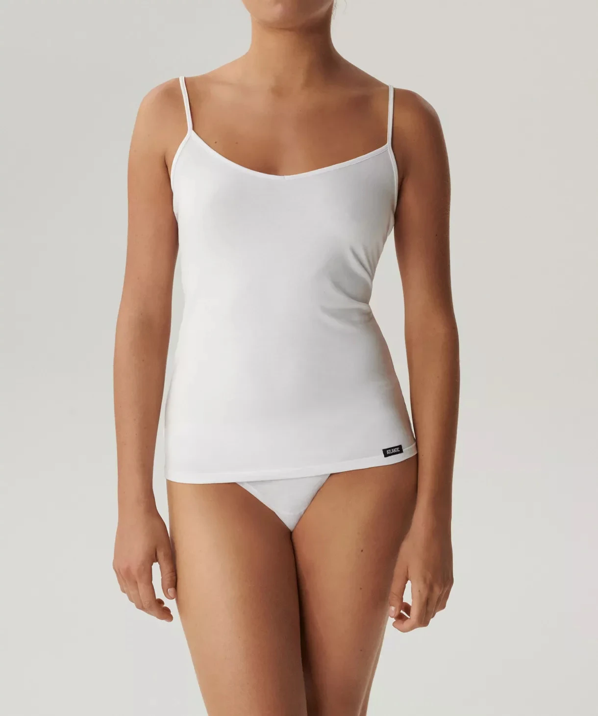 Przylegająca do ciała damska koszulka wykonana jest z miękkiej w dotyku bawełny połączonej z elastanem, która dodatkowo jest też bardzo wytrzymała i odporna na mechaniczne działanie. W koszulce można regulować długość ramiączek, dzięki czemu doskonale dopasowuje się do sylwetki.