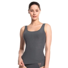 Drobně žebrovaná dámská košilka (tílko) se širokými ramínky.