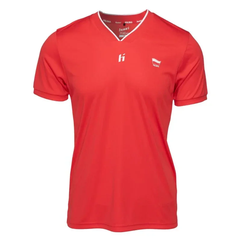 Pánské tričko ALUMNI POLAND značky Huari má rovný střih s výstřihem do V. Je vyrobeno ze syntetického materiálu, jehož výhodou je odvod potu od pokožky. Zadní strana trička má strukturu tvořenou tisíci malých otvorů, které pomáhají transportovat vlhkost ven. Celek je doplněn nápisem Poland a polskou vlajkou.