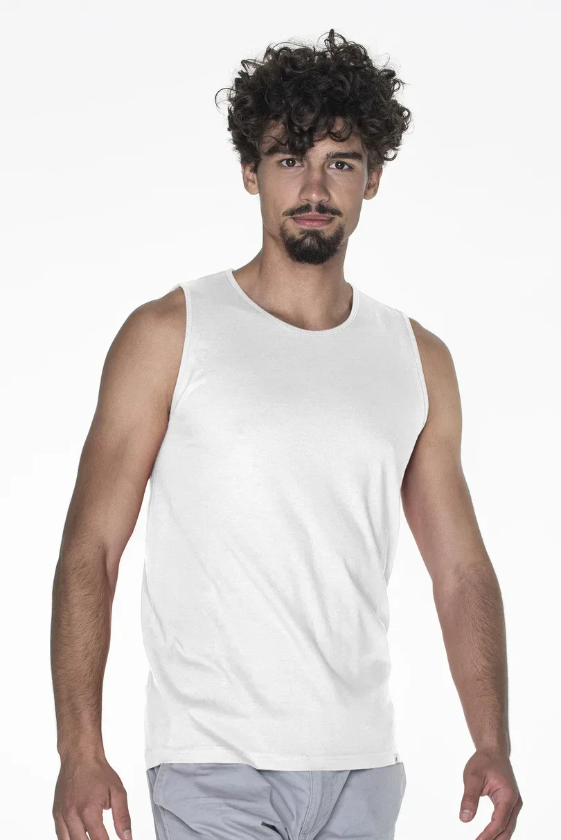Pánské tričko bez rukávů. Popis: bezešvé boky, dvojité švy, výstřih a ramínka s lemováním. Materiál: 100% bavlna ring-spun. Gramáž: 150 g/m2