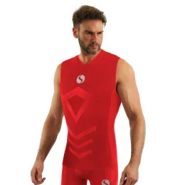 Pánské termo tričko bez rukávůó. Elastický a prodyšný materiál má antialergický a antibakteriální účinek a udržuje optimální tělesnou teplotu. Bezešvá technologie zajišťuje ideální volnost pohybu a speciální elastické zóny chrání před odřením. Ideální pro sport. Tkanina s termoregulačními vlastnostmi při nízkých i mírných teplotách.