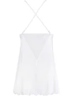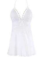Objevte svou svobodu v naší efektní, bílé babydoll s bohatě zdobenými proužky na dekoltu. Každá má doplňky ve zlaté barvě, které zvýrazní vaše tělo. Celek je vyroben z velmi jemného a pružného mikrovlákna, s krajkovými vsadkami. Obvod kolem prsou na odpovídajícím pásku, ramínka se vzadu kříží, nejsou odepínací, ale dají se nastavit. Ke každé naší babydoll přidáváme zdarma kalhotky, elastické, ze stejného materiálu, zdobené ornamentem ve zlaté barvě. Součástí kompletu jsou tanga. Materiálové složení: Polyamid 82 %, Elastan 17 %, Bavlna 1 %