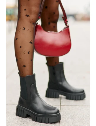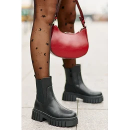 Kotníkové boty vyrobené z eko kůže jsou módní a praktickou volbou na chladnější dny. Model zapínaný na zámek, osazený na platformě a plochém podpatku, zajišťuje pohodlí a jemné zvýšení. Zaoblené špičky jim dodávají klasický vzhled a elastická vsadka na svršku usnadňuje přizpůsobení noze. Vnitřek zateplený obuvnickou dekou zaručuje teplo a pohodlí, což činí tyto boty vynikající volbou pro každodenní nošení. Při výběru velikosti se prosím řiďte tabulkou velikostí.