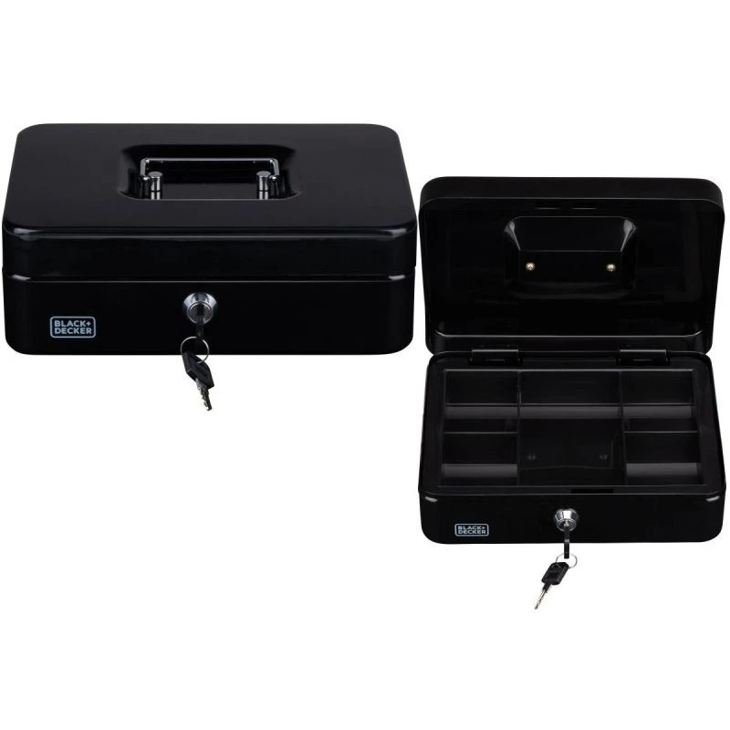 KOVOVÁ KAZETA NA PENÍZE A DOKUMENTY15x8x11,8 CM BLACK + DECKER je pevně vyrobený výrobek, ideální pro uložení peněz, dokumentů a drobných cenností. Jedná se o robustní kufřík, který uchová vaše peníze a dokumenty v bezpečí.