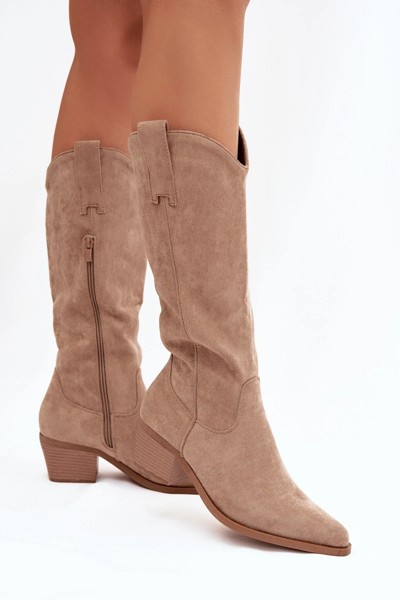 Dámské kožené kozačky vyrobené z ekologického semiše jsou stylovým modelem inspirovaným západním akcentem. Postavené na charakteristickém, zkráceném podpatku, zvýrazňují siluetu a dodávají celému vzhledu jedinečný charakter. Špičaté nosy jim dodávají eleganci a izolace z pěny pokryté měkkým materiálem zajišťuje pohodlí a teplo v chladnějších dnech. Model je s jednoduchým nazouváním, přičemž dodatečný zip usnadňuje obouvání a přizpůsobení. Ideální pro podzimní a zimní stylizace, jak pro každodenní, tak i pro módní outfity. Při výběru velikosti se řiďte níže uvedenou tabulkou velikostí. Při výběru velikosti se řiďte tabulkou velikostí.