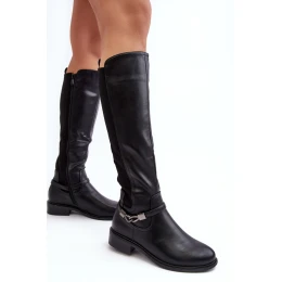 Dámské boty z ekologické kůže. Svršek před kolenem. Zaoblené špičky. Střed podšitý přikrývkou na boty. Zapínání na zip. Plochý podpatek zajišťuje stabilitu při každém kroku. Kromě toho mají boty zpevněnou patu. Určitě je využijete při mnoha stylizacích.