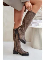 Dámské boty z přírodní kůže. Svršek sahající před kolena dodává botám eleganci a dokonale ladí s různými styly. Jemný vzhled zajišťuje zaoblený nos. Model se zapíná na zip pro snadné nazouvání a ozdobné proužky na svršku dodávají charakter. Vnitřní strana je zateplená plstí. Tyto boty jsou ideální pro každodenní nošení i výjimečné události a budou skvělým doplňkem vašeho šatníku!
