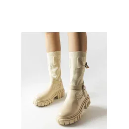 Béžové stylové kozačky s elastickou návlekou Ida jsou ideální obuv na chladnější dny. Mají střední podpatek, který zajišťuje stabilitu během chůze a zároveň dodává eleganci. Teplé vnitřní strana zajišťuje pohodlí při nošení a kulatá špička dodává subtilitu. Elastická návlečka se dokonale přizpůsobí tvaru nohy, což zaručuje nejen pohodlí, ale také skvělý vzhled. Vyrobené z vysoké kvality gumy, jsou odolné proti dešti a vlhkosti, což z nich dělá nenahraditelné v podzimní a zimní atmosféře. Navíc, nárazové modely usnadňují jejich obouvání a svlékání a plochý podpatek zajišťuje pohodlí po celý den. Tyto kozačky jsou skvělou volbou pro ženy, které ocení originální design a spolehlivost. Ideální kombinace funkčnosti, módního designu a pohodlí.