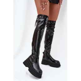 Boty vyrobené z lakové ekokože. Umístěné na masivní platformě, poskytují stabilitu a pohodlí. Zaoblené špičky přidávají jemnost, a model se zipem na spodní části holeň umožňuje snadné obutí. Šněrovací prvek nahoře na holeni přidává charakter a polstrované zateplení pouze uvnitř boty zaručuje teplo a pohodlí. Ideální na chladnější dny, tyto boty se skvěle hodí do zimních stylizací s šaty a sukněmi.