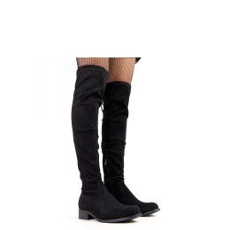 Kozačky z semiše z ekologické kůže jsou spojením elegance a pohodlí na chladnější dny. Kulatá špička a zateplení zajišťují pohodlí, a přes koleno sahající 59 cm vysoký svršek chrání nohy před chladem. Nízký, 3,5centimetrový podpatek zaručuje stabilitu a pohodlí při chůzi, a praktické zapínání na zip usnadňuje obouvání. Vnitřek z látky zvyšuje pohodlí nošení, díky čemuž se kozačky hodí do každodenních a elegantních stylizací.