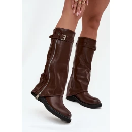 Dámské kozačky s otočeným límcem jsou opravdovým hitem podzimně-zimní sezóny. Vyrobené z ekokože. S plochým podpatkem jsou ideální pro každodenní nošení a díky vycpávce boty poskytují pohodlí a teplý pocit v chladnějších dnech. Praktický, navlékací střih usnadňuje obouvání, a módní detaily dodávají zvláštní charakter - pásek s přezkou na vrcholu límce a stříbrný zip, který si můžete podle svých preferencí rozepnout, dělají tento model originálním a stylovým doplňkem. Jsou to kozačky, které skvěle doplní jak každodenní outfity s kalhotami nebo legínami, tak i ženské stylingy s šaty.