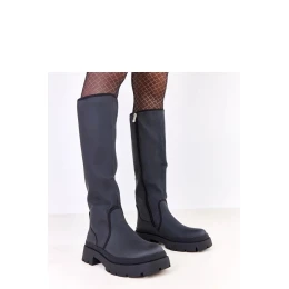 Elegantní a stylové klasické kozačky jsou must-have v zimní garderobě. Vyrobené z vysoké kvality matné ekologické kůže, kombinují odolnost s elegantním vzhledem. Model má kulatou špičku a vyhřívání, které poskytuje pohodlí a teplo v chladných dnech. Zip usnadňuje obouvání a svlékání, a 5,5 cm podpatek zaručuje pohodlí a stabilitu při chůzi. 38 cm vysoký svršek, sahající ke koleni, krásně obepíná nohu, zjemňující postavu. Vložka z umělé hmoty je odolná a snadno se udržuje v čistotě. Jsou to univerzální, vysoké kozačky, které se osvědčí v každodenních i elegantnějších stylizacích, kombinující pohodlí s klasickým designem.