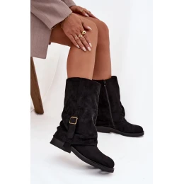 Dámské kozačky vyrobené z ekokoženky jsou ideální volbou pro ženy, které ocení styl a pohodlí v jednom. Model na ploché podrážce zajišťuje pohodlí během každodenního nošení, zároveň elegantně a žensky vypadá. Zapínání na zip usnadňuje obouvání a svlékání obuvi, což zvyšuje její praktičnost. Pozornost přitahuje efektní, zahnutý svršek zdobený páskem s přezkou, který celku dodává moderní charakter. Měkká faktura ekokoženky zdůrazňuje vzhled bot, činí je skvělým doplňkem podzimních a zimních stylizací. Tyto kozačky se skvěle hodí jak k sukním a šatům, tak k přiléhavým kalhotám, vytvářejí stylový každodenní vzhled.