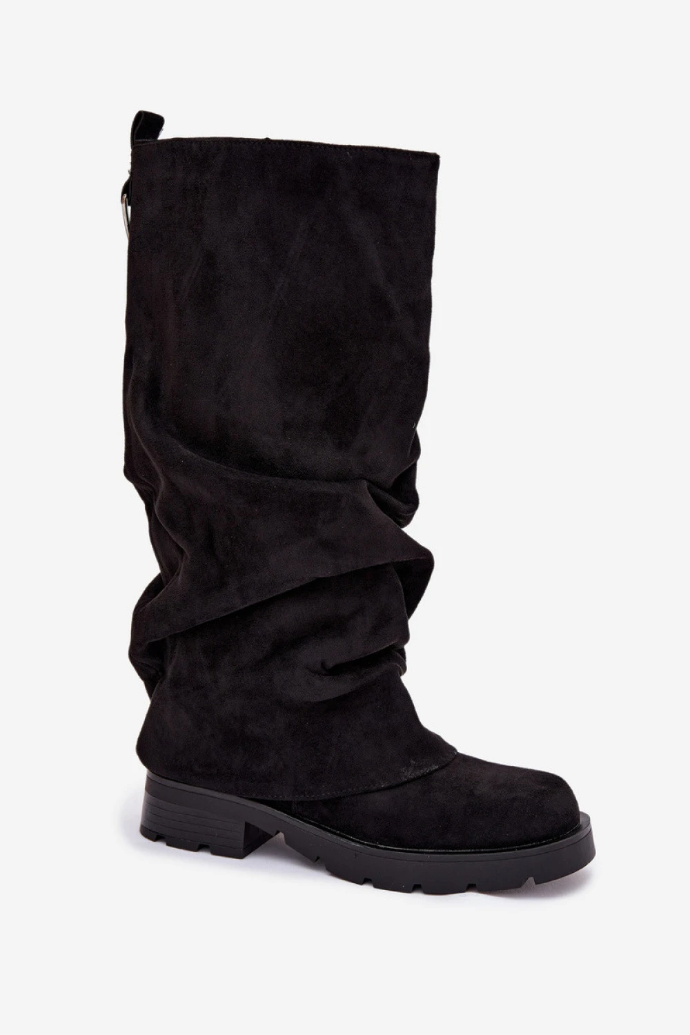 Dámské kozačky vyrobené z ekologického semiše jsou pohodlnou a stylovou volbou na chladné dny. Vnitřek vybavený koženým polštářkem zajistí teplo a plochý podpatek zaručuje pohodlí při každodenním nošení. Model se vyznačuje efektním, otočeným a zmačkaným svrškem, který mu dodává módní charakter. Kozačky jsou jak zapínatelné, tak s zipem, co usnadňuje obouvání a přizpůsobení. Ideální k úzkým kalhotám, sukni a šatům.