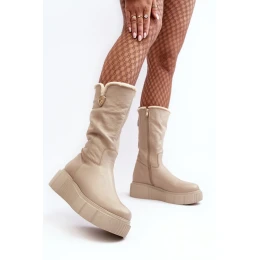 Dámské boty byly vyrobeny z přírodní kůže. Tento model má na boku svršku zip. Vnitřek je zateplen přírodní vlnou. Pata je vyztužená. Boty jsou usazeny na masivní platformě a podpatku na platformě. Na boku svršku mají ozdobný prvek. Tento model bude ideální pro chladné zimní dny.