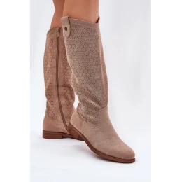 Kozačky Na Plochém Podpatku S Děrovaným Vzorem Béžové S.Barski HY51-062