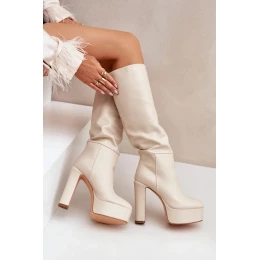Kozačky na podpatku a platformě z eko kůže světle béžové Felilorn