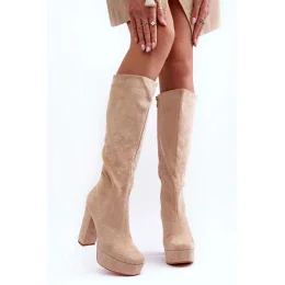Kozačky na podpatku F11189 béžové - Step in style