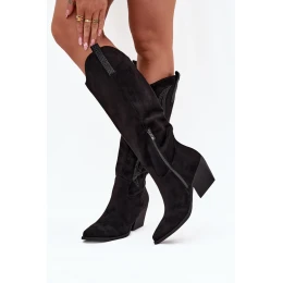 Dámské kozačky z ekokože, osazené na sloupcovém podpatku, jsou stylovým návrhem na chladnější dny. Svršek sahá až po kolena, co jim dodává klasický vzhled, a ozdoby jim dodávají jedinečný charakter. Špičaté špičky opticky zjemňují nohy, a model se zavíraním na zip na spodní části boty zajistí pohodlí a snadné obouvání. Skvěle se hodí k elegantním i volným stylizacím, ideální na zimní výlety.