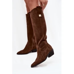 Kozačky westernové dámské vyrobené z vysoce kvalitní přírodní zamsu jsou spojením klasiky, pohodlí a stylu. Měkký, příjemný na dotek materiál se skvěle přizpůsobuje noze, poskytujíc pohodlí při nošení a elegantní vzhled. Model s zipem je praktický a pohodlný v užívání, díky čemuž se boty snadno obouvají a svlékají. Kozačky jsou vyztužené filcem, což zaručuje teplo a pohodlí v chladnějších dnech, a zkrácený podpatek jim dodává originální, charakteristický vzhled inspirovaný westernovým stylem. Spící špičky opticky prodlužují nohy, přidávajíce siluetě lehkost a ženskou eleganci. Stylový střih těchto westernovek se skvěle hodí do mnoha stylizací, budou ideálním doplňkem jak pro vzdušné šaty a sukně, tak i pro přiléhavé kalhoty typu skinny.