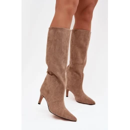 Dámské kozačky z ekokože jsou elegantní volbou na chladné dny. Zasunuté a umístěné na štíhlém jehlovém podpatku dodávají postavě lehkost a ženský šarm. Špičaté špičky zdůrazňují rafinovaný charakter a zateplení zajišťuje pohodlí a teplo v podzimně-zimních dnech. Ideální pro efektní módní stylizace.
